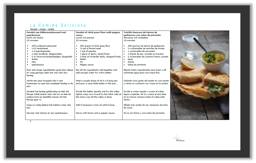 • recept Omelet van kikkererwtenmeel en paprikasaus - recipe Omelet of chick peas flour and pepper sauce - receta Tortilla francesa de harina de garbanzos con salsa de pimiento