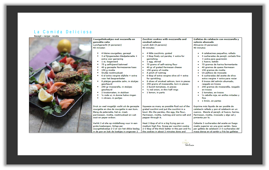 • recept Courgettekoekjes met mozzarella en gerookte zalm - recipe Zucchini cookies with mozzarella y smoked salmon - receta Galletas de calabacín con mozzarella y salmón ahumado
