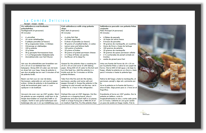 • recept Vis saltimbocca met krokante polentafrites - recipe Fish saltimbocca with crisp polenta chips - receta Saltímbocca pescado con polenta fritas crujiente