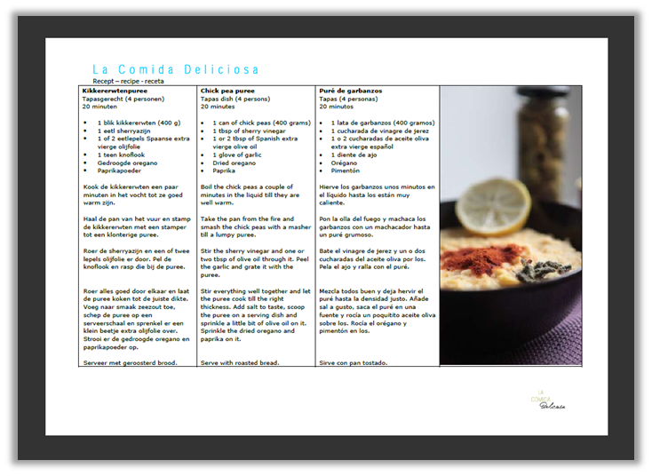 • recept Kikkererwtenpuree- recipe Chickpeas puree- receta Puré de garbanzos