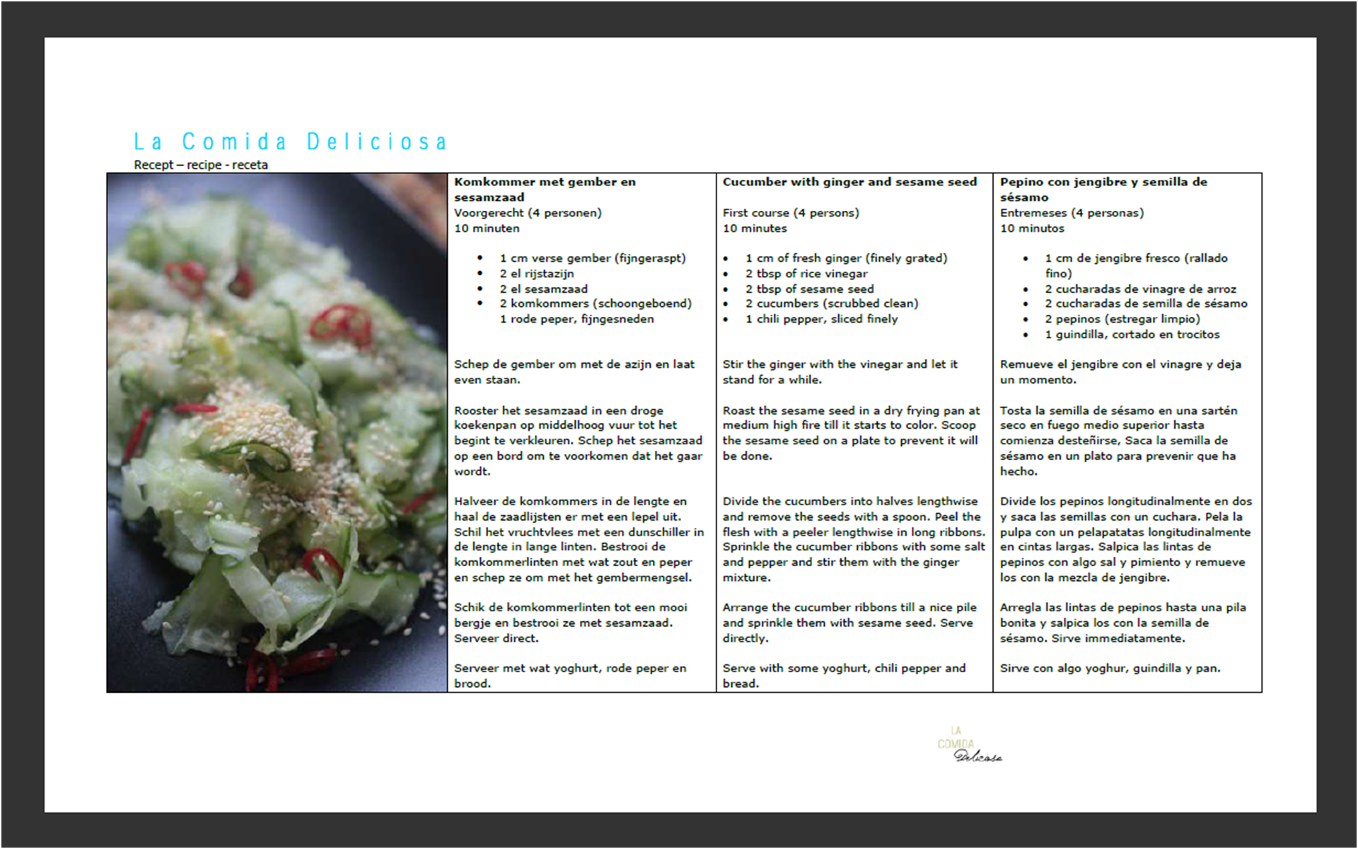 • recept Komkommer met gember en sesamzaad - recipe Cucumber with ginger and sesame seed - receta Pepino con jengibre y semilla de sésamo