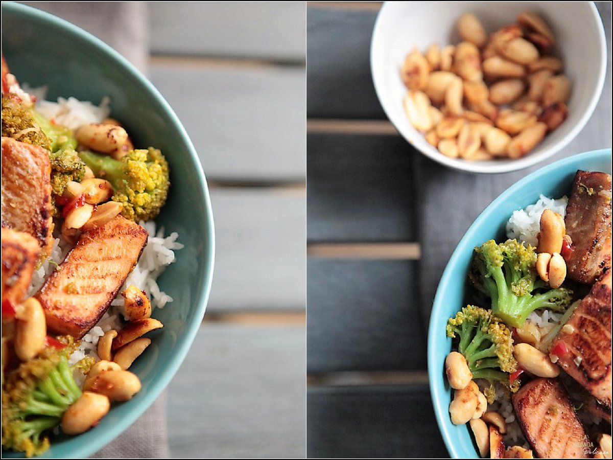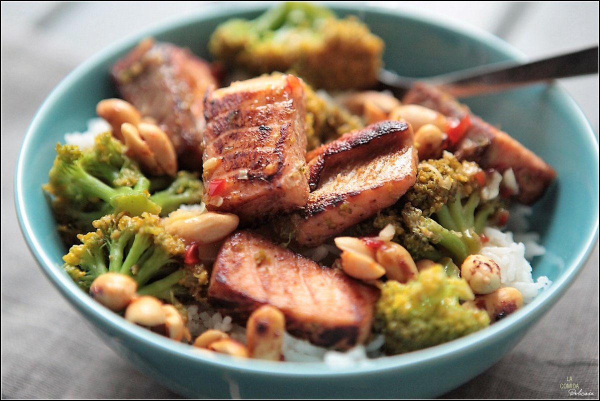 Stir fried salmon with broccoli - Salmón sofreído con brócoli - Roergebakken zalm met broccoli