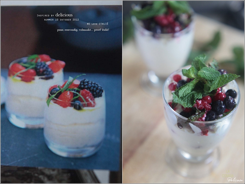 Lately I saw this very sweet dessert in a magazine, sweet by the whipping cream, the honey and the mascarpone.