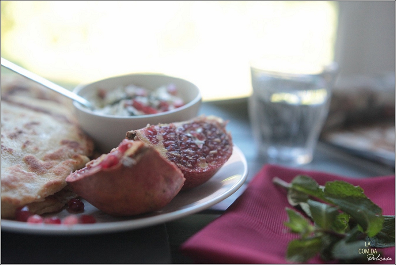 Aunque son platos para la Navidad tú puedes comerlos en cada mes. Me concentro en platos que no haces diario, como este entremés con que puedes remojar bien: hecho mismo pan plano. En la revista de cocina están más chapuzones y he elegido uno con yogur porque yo he estado un envase en el frigorífico. Y con otro plato es una comida variada y comes suficientes vitaminas.