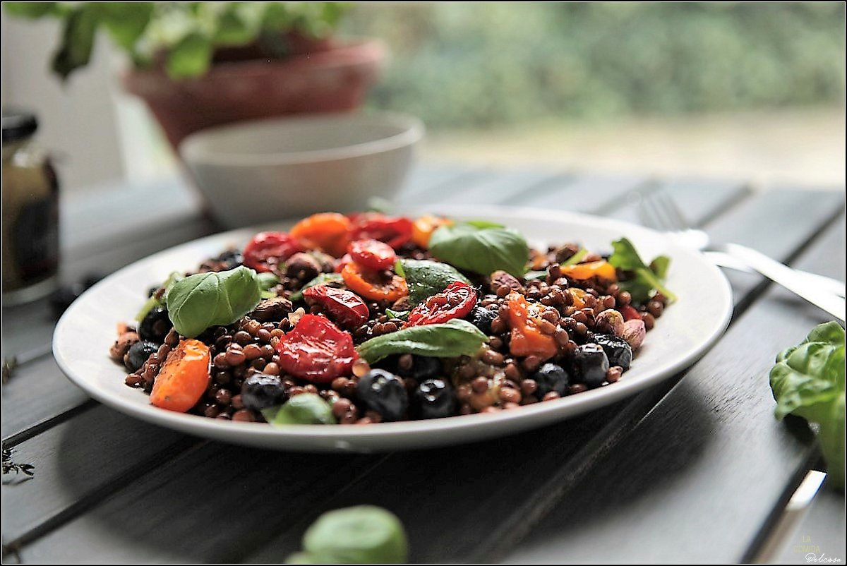 And you? Are you going to cook with what you have now at home? Then make this lentil salad with tomato and blueberries and follow my step by step recipe and you put this dish at the table tonight. Will you rather watch how you make this dish, then watch the video.